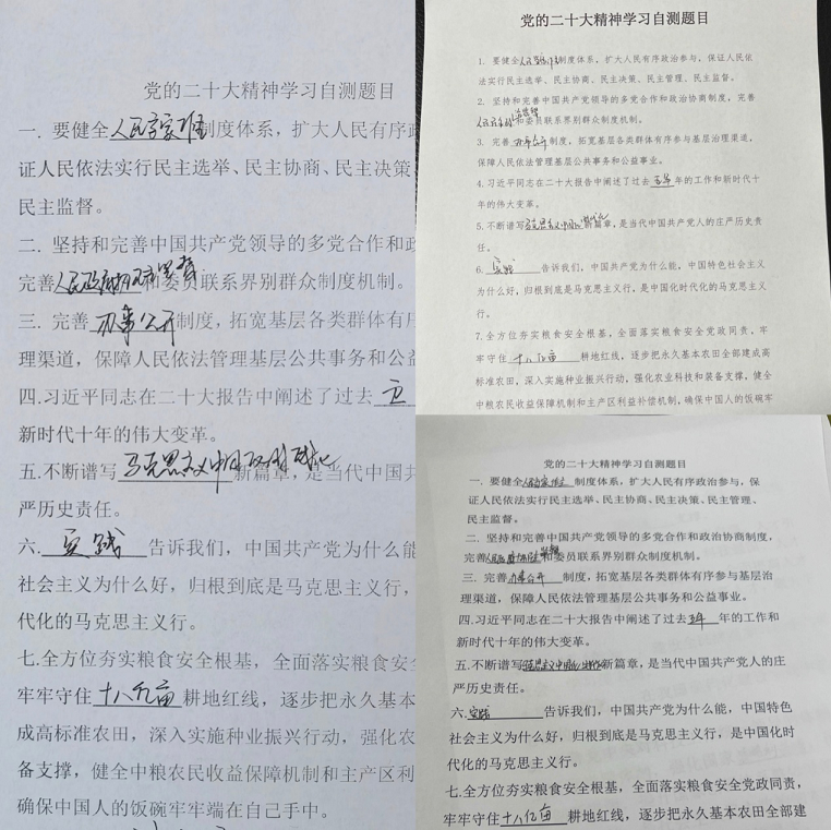 開展答卷測試,檢驗(yàn)學(xué)習(xí)成效。招標(biāo)咨詢集團(tuán)第三黨支部所屬咨詢中心采取線上視頻會(huì)議的方式組織全體黨員居家學(xué)習(xí)黨的二十大報(bào)告原文,通過學(xué)原文、悟原理、反復(fù)學(xué)、時(shí)常悟,深刻領(lǐng)會(huì)和準(zhǔn)確把握報(bào)告的精神實(shí)質(zhì)、豐富內(nèi)涵和核心要義。同時(shí),對黨的二十大報(bào)告相關(guān)知識開展應(yīng)知應(yīng)會(huì)測試,通過答卷的方式檢驗(yàn)黨員干部對黨的二十大精神的理解和把握,達(dá)到以考促學(xué)、以學(xué)促用、學(xué)用結(jié)合、知行合一的目的。