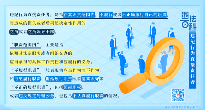 違紀行為直接責任者,是指在其職責范圍內(nèi),不履行或者不正確履行自己的職責,對造成的損失或者后果起決定性作用的黨員或者黨員領導干部。
