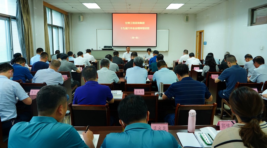 為認(rèn)真學(xué)習(xí)貫徹黨的十九屆六中全會精神,深入學(xué)習(xí)領(lǐng)會習(xí)近平總書記在省部級主要領(lǐng)導(dǎo)干部學(xué)習(xí)貫徹黨的十九屆六中全會精神專題研討班上的重要講話精神,6月22日,甘肅工程咨詢集團(tuán)舉辦黨的十九屆六中全會精神開班儀式。集團(tuán)公司黨委書記、董事長宋忠慶出席開班儀式并講話,黨委副書記王春燕主持。