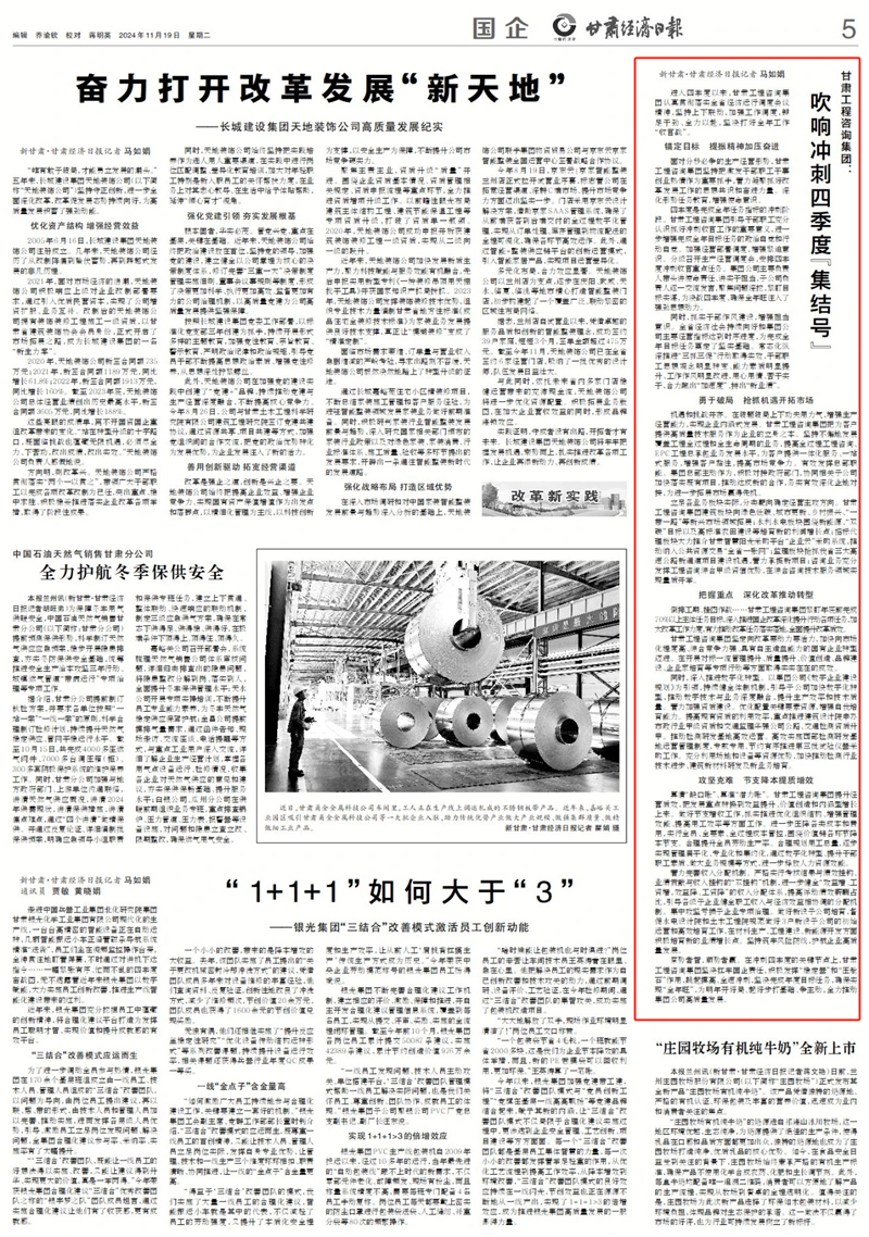 進入四季度以來,甘肅工程咨詢集團認真貫徹落實全省經(jīng)濟運行調(diào)度會議精神,堅持上下聯(lián)動,加強工作調(diào)度,鉚足干勁、全力以赴,堅決打好全年工作“收官戰(zhàn)”。