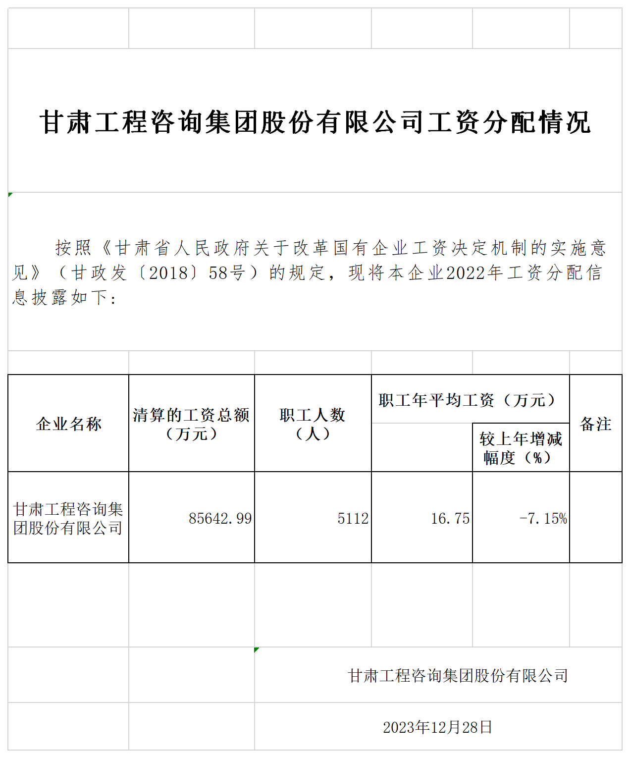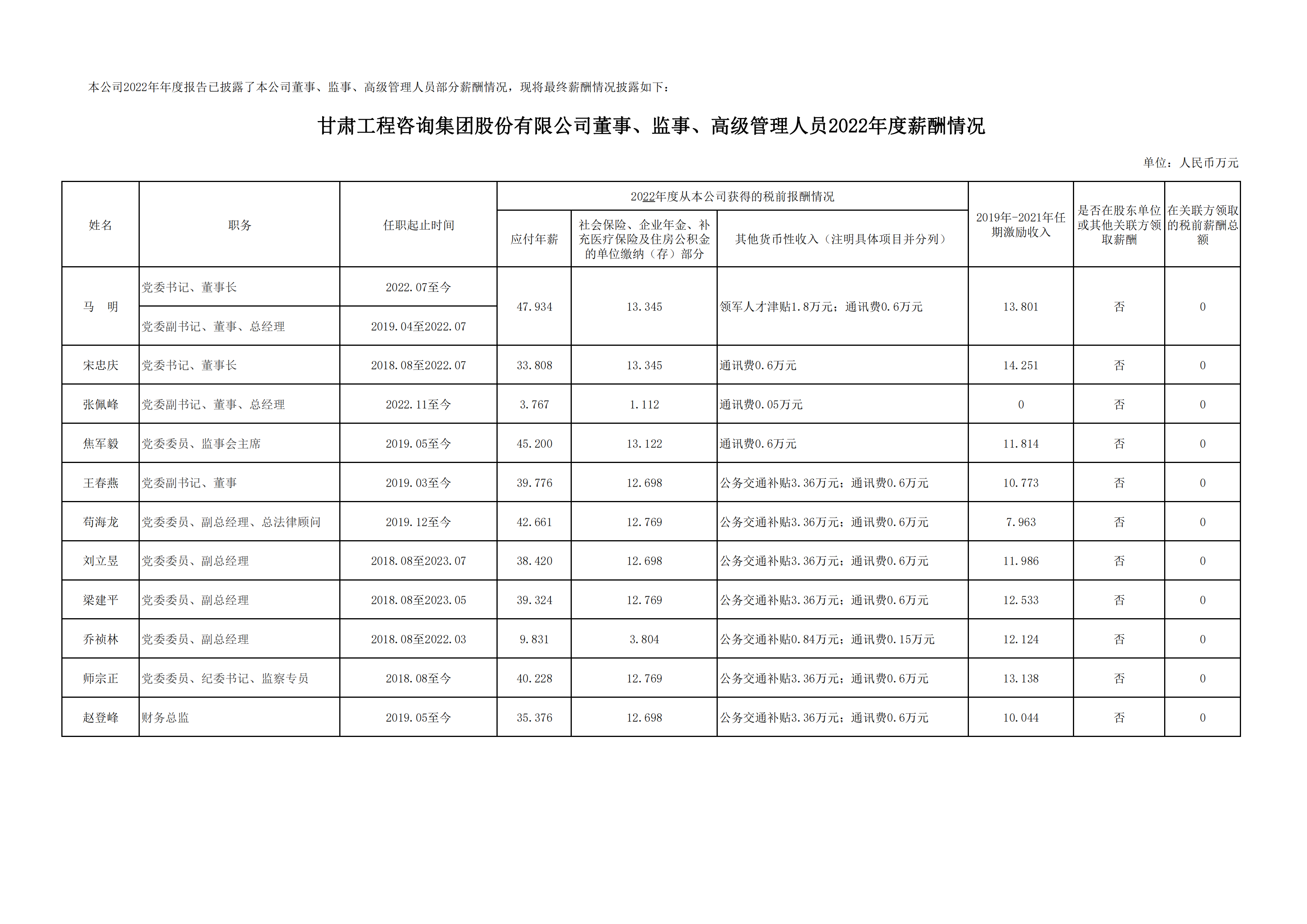 甘肅工程咨詢集團(tuán)股份有限公司董事、監(jiān)事、高級(jí)管理人員2022年度薪酬情況及甘肅工程咨詢集團(tuán)股份有限公司工資分配情況