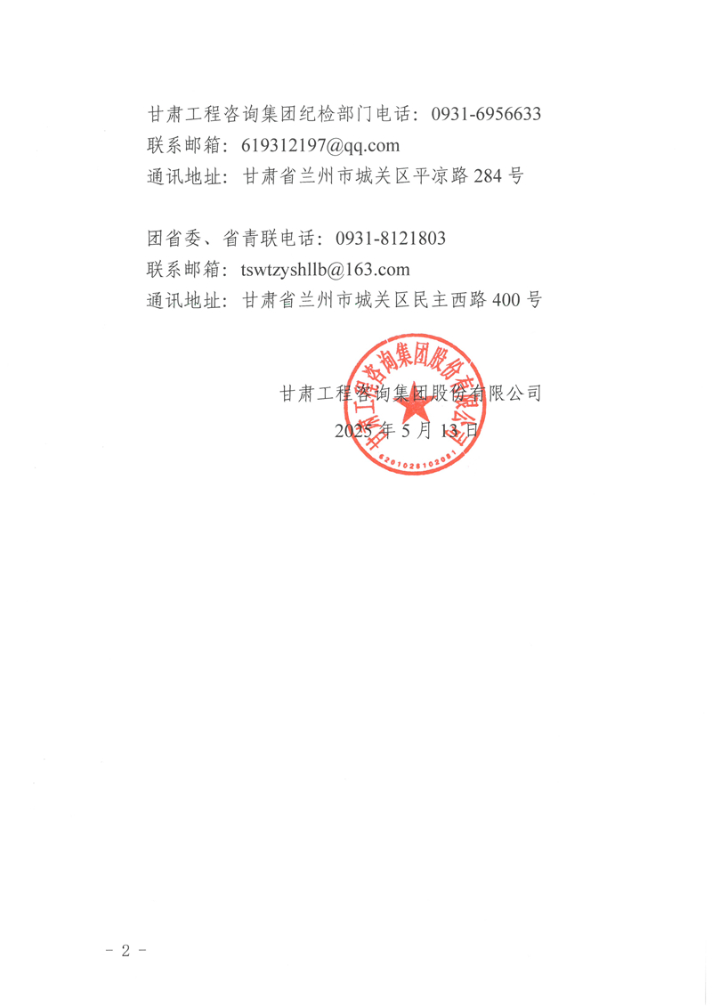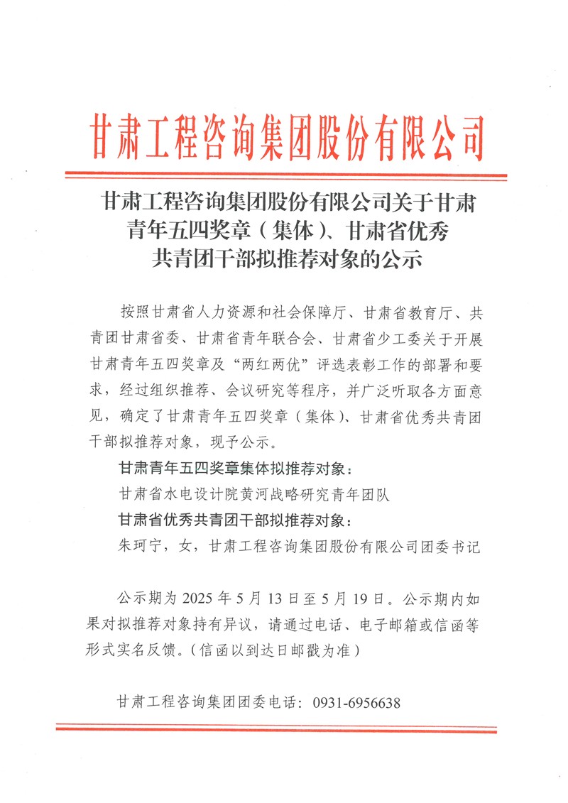 甘肅工程咨詢集團股份有限公司關(guān)于甘肅青年五四獎?wù)拢w)、甘肅省優(yōu)秀共青團干部擬推薦對象的公示