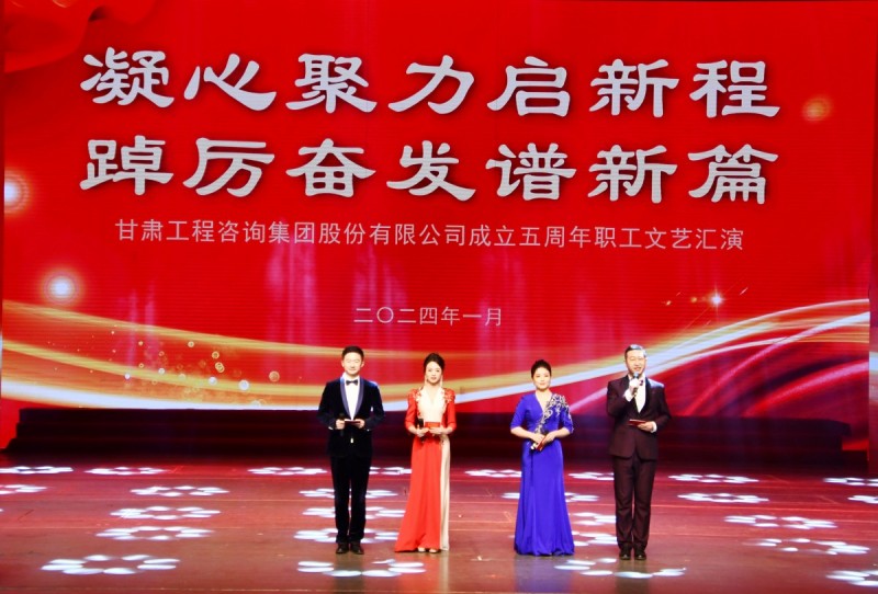 風(fēng)華正茂五年載,逐夢星辰向未來。1月8日,甘肅工程咨詢集團(tuán)成立五周年“凝心聚力啟新程 踔厲奮發(fā)譜新篇”職工文藝匯演在黃河大劇院隆重舉行。甘肅電氣裝備集團(tuán)有限公司黨委書記、董事長劉萬祥,甘肅藥業(yè)投資集團(tuán)有限公司黨委書記、董事長周榮,甘肅省水務(wù)投資集團(tuán)有限公司黨委書記、董事長李建軍,甘肅科技投資集團(tuán)有限公司黨委委員、監(jiān)事會(huì)主席肖建勝,國泰君安證券甘肅分公司副總經(jīng)理廖光蔚;集團(tuán)公司原黨委書記、董事長宋忠慶,原黨委委員、副總經(jīng)理梁建平、喬禎林;集團(tuán)公司黨委書記、董事長馬明,黨委副書記、總經(jīng)理張佩峰,黨委委員、監(jiān)事會(huì)主席焦軍毅及其他領(lǐng)導(dǎo)班子全體成員一同觀看了演出。