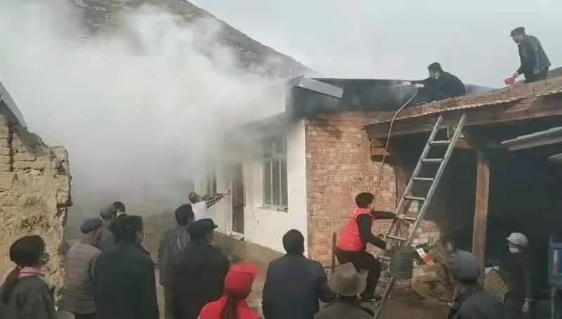 10月30日下午3點,交通監(jiān)理公司負責幫扶的臨潭縣洮濱鎮(zhèn)馬旦溝村一戶村民家中突然冒出滾滾濃煙,火光在濃煙中忽隱忽現(xiàn)。著火是一座磚木結構彩鋼屋頂?shù)男路?,火從屋頂燒起,越燒越旺。著火的房屋旁邊堆放著多年的老柴火,干燥異常,一絲火星就能點燃,而與著火點緊鄰著的就是布局緊密的鄉(xiāng)親們的房屋,再往外圍則緊接著山林,如果火勢蔓延,后果將不堪設想。