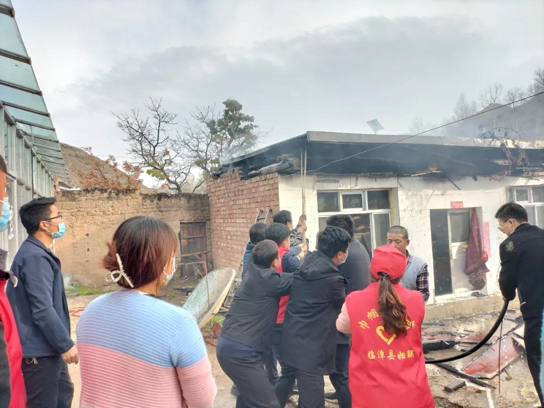 危急關頭,駐村第一書記、幫扶工作隊隊長魏萬軍和村干部侯海峰一頭沖進著火房屋,迅速拉斷電閘,還將電視機等貴重物品搶救了出來??粗饎葑兇?,穿著防疫背心的村干部,迅速趕往左鄰右舍,緊急動員群眾迅速轉(zhuǎn)移到安全地方。在鎮(zhèn)領導、幫扶工作隊、包村干部及村干部的帶動下,越來越多的村民也加入到救火隊伍當中,大家齊心協(xié)力,奮力撲救,最后終于將火撲滅,人民群眾生命財產(chǎn)得到了保護。