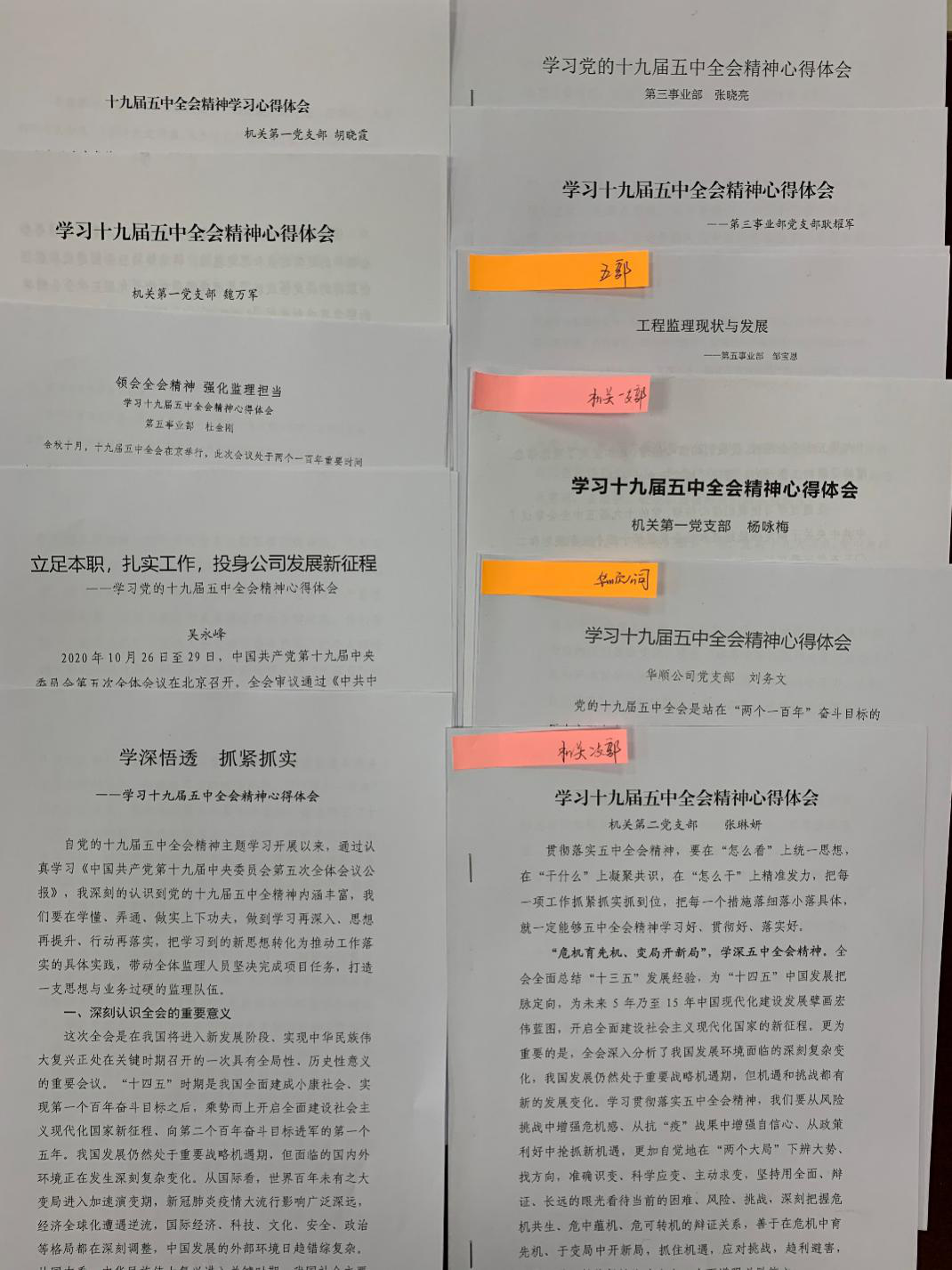 為進(jìn)一步深入學(xué)習(xí)貫徹落實(shí)黨的十九屆五中全會(huì)精神,擴(kuò)大學(xué)習(xí)覆蓋面,擴(kuò)展學(xué)習(xí)的深度,引導(dǎo)全體黨員干部統(tǒng)一思想、凝聚共識(shí),不斷提振精神狀態(tài)、改進(jìn)工作作風(fēng)、提升工作效能,公司黨委專(zhuān)門(mén)發(fā)文對(duì)學(xué)習(xí)貫徹五中全會(huì)精神進(jìn)行了專(zhuān)題安排,要求全體黨員在黨委理論學(xué)習(xí)中心組學(xué)、支部學(xué)、部門(mén)學(xué)、個(gè)人自學(xué)的基礎(chǔ)上,自覺(jué)撰寫(xiě)學(xué)習(xí)心得體會(huì),共收集心得體會(huì)84篇。從收到的心得體會(huì)來(lái)看,全體黨員在學(xué)習(xí)貫徹黨的十九大五中全會(huì)精神過(guò)程中動(dòng)腦、入心,做到了做到學(xué)有所思、學(xué)有所慮、學(xué)有所得、學(xué)有所做。