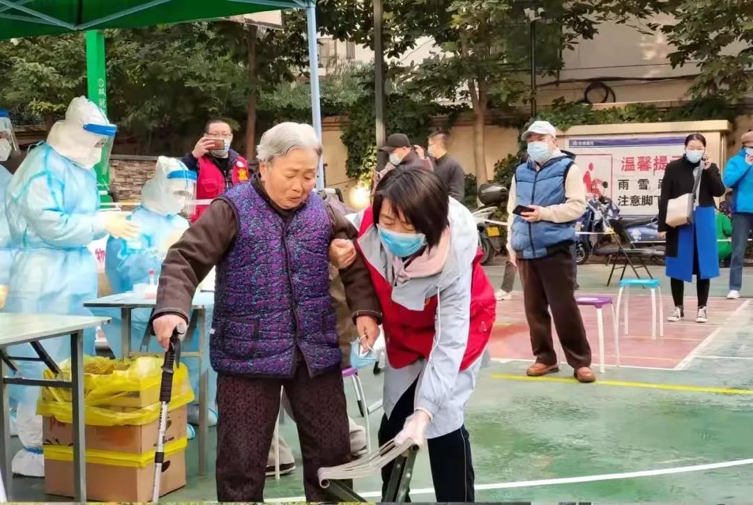 號令一出,不到半個小時時間,300多人的志愿隊伍已組建就緒。當(dāng)天下午,第一批志愿者隊伍,統(tǒng)一身穿紅馬甲,佩戴口罩,迅速奔赴南關(guān)夜市、伊真大廈、五泉街道、外國語中學(xué)等多個檢測點開展志愿服務(wù)。而女志愿服務(wù)者則更成為了深秋季節(jié)疫情防控一線最靚麗的一道風(fēng)景。“您好,請?zhí)嵩绱蜷_微信健康出行碼”“請大家不要扎堆聚集,按照1米線要求,有序排隊”“請黃碼人員、老人、孕婦和小孩走綠色通道”……一聲聲溫馨提示,一次次貼心攙扶,都是她們最溫情的守護。