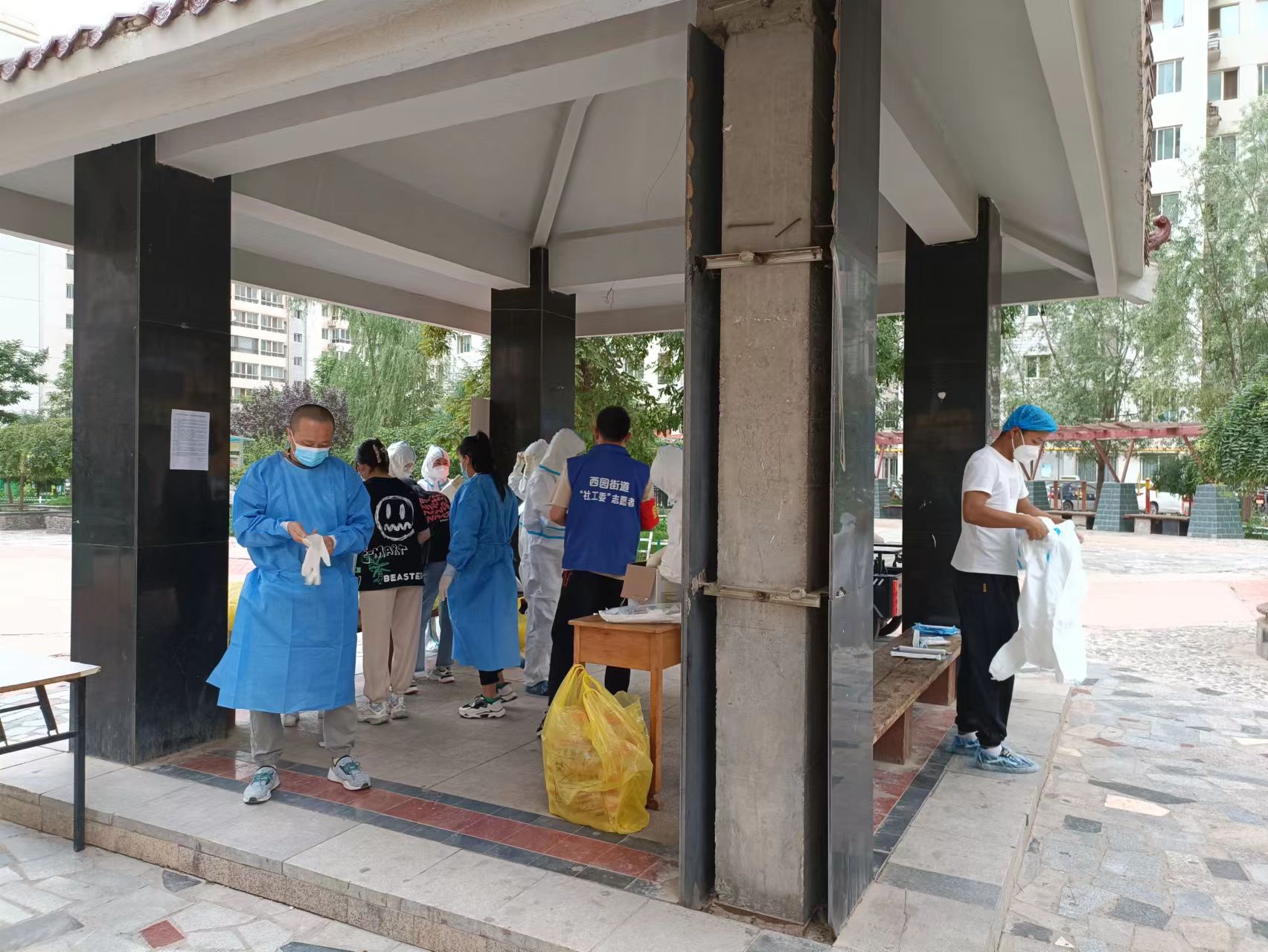 除了報(bào)名下沉社區(qū)的人外,還有一些干部職工主動(dòng)聯(lián)系社區(qū)參加到了志愿服務(wù)者的隊(duì)伍中來(lái)。對(duì)規(guī)劃設(shè)計(jì)院第十三黨支部書(shū)記、建筑設(shè)計(jì)九分院院長(zhǎng)路文理和檢測(cè)分院的張文慶來(lái)說(shuō),志愿工作早已輕車(chē)熟路,這已經(jīng)是他們第三次參加社區(qū)疫情防控志愿服務(wù)了。本輪疫情發(fā)生后,他們?cè)俅文嫘卸?,義無(wú)反顧地沖到疫情防控“第一線”。