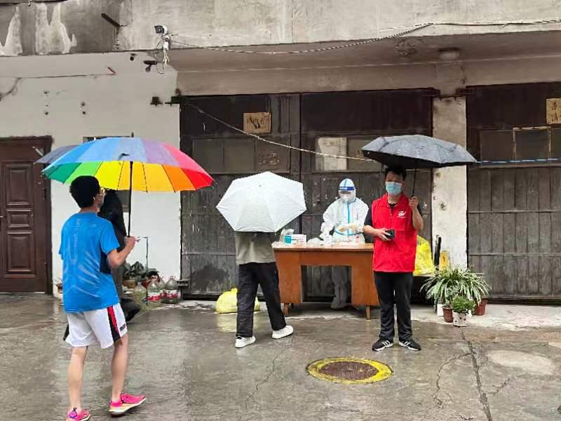 在高風(fēng)險(xiǎn)社區(qū),規(guī)劃設(shè)計(jì)院第十六黨支部入黨積極分子劉偉正在執(zhí)行“封門(mén)”任務(wù)?!耙唤拥酱_診通知,我們就要連夜對(duì)密接住戶(hù)施行管控措施,工作時(shí)間是24小時(shí)隨時(shí)待命,防護(hù)服穿脫太麻煩,累了我找地方靠一會(huì)兒就行?!睂O偉略帶疲倦地說(shuō)道。高風(fēng)險(xiǎn)區(qū)意味著與病毒更近距離的接觸,對(duì)志愿者的規(guī)范操作要求也更加嚴(yán)格。每一次敲門(mén)、登記、核對(duì)人數(shù)、掃碼做核酸等看似簡(jiǎn)單的流程,他都會(huì)在腦海里反復(fù)演練。突然的封門(mén),會(huì)有一些居民鬧情緒,面對(duì)激烈的言辭,他總能耐心安撫,爭(zhēng)取居民對(duì)防控措施更多的理解和支持??臻e時(shí),他會(huì)拎著大袋小袋,給住戶(hù)送些必備物資,提醒他們做好防護(hù),做些力所能及的事情。勇者不孤,劉偉僅僅是這支隊(duì)伍中的一分子,還有像武利平、楊致遠(yuǎn)、姚友龍、劉澤靖、孔利兵、巨斌、楊一、劉偉、滿(mǎn)子熠、李文磊、仲乃河、蘇曉文、魏翔等像他一樣的志愿者,正在社區(qū)疫情防控一線,默默地貢獻(xiàn)著自己的力量。他們有的是企業(yè)中層“一把手”,有的是建筑師,有的是規(guī)劃師,有的是財(cái)務(wù)管理人員……,但穿上白色的防護(hù)服、換上紅色的馬甲,他們就有了一個(gè)共同的名字——疫情防控志愿者。