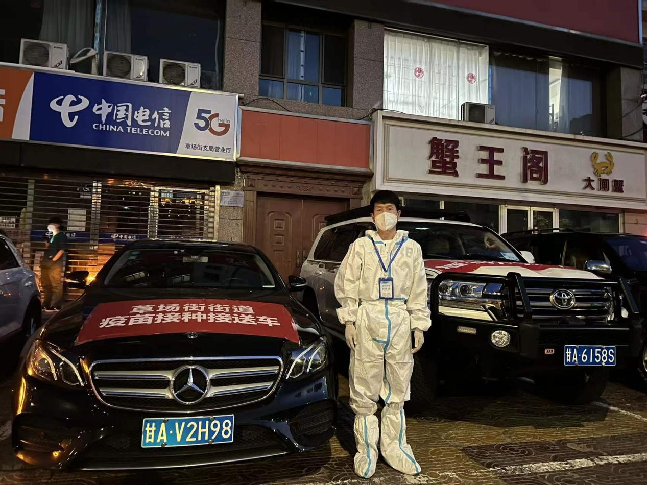 張文慶作為草場(chǎng)街街道愛(ài)心車(chē)隊(duì)的“老司機(jī)”,他的任務(wù)就是每天開(kāi)著私家車(chē)以“一個(gè)采樣點(diǎn)一輛車(chē)”的模式護(hù)送“大白”上下班,正常的工作時(shí)間是下午兩點(diǎn)到第二天凌晨?jī)牲c(diǎn),如果遇到緊急情況,工作到天亮也是常有的事情?!搬t(yī)護(hù)人員非常辛苦,能為他們做點(diǎn)什么,我很開(kāi)心”。每次接送任務(wù)結(jié)束后,張文慶都會(huì)對(duì)車(chē)輛進(jìn)行認(rèn)真地清洗和消毒,還會(huì)在車(chē)?yán)餃?zhǔn)備一些礦泉水和小零食。接送中雖然看不到彼此模樣,但卻依然能夠感受到對(duì)方最真摯的微笑。危難時(shí)刻,許許多多的張文慶們?yōu)槌鞘虚_(kāi)辟了一條盡快恢復(fù)“煙火氣”的寶貴通道。
