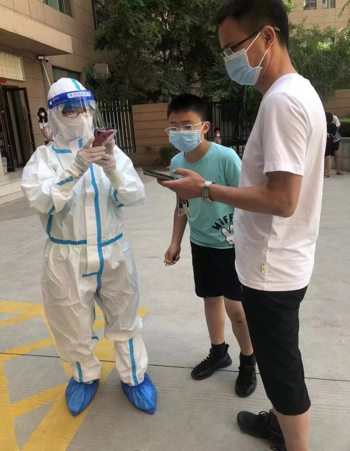 疫情防控,黨員先行。面對(duì)嚴(yán)峻復(fù)雜的疫情防控形勢(shì),在醫(yī)護(hù)人員短缺的情況下,有著14年黨齡的張鵬下沉到學(xué)府路社區(qū),擔(dān)任起眾邦金水灣2號(hào)院疫情防控核酸檢測(cè)掃碼員工作。除了負(fù)責(zé)掃碼錄入信息以外,張鵬還負(fù)責(zé)為小區(qū)居民配送生活物資、維護(hù)小區(qū)內(nèi)的秩序、開(kāi)展夜間通宵值守工作等,熱心的服務(wù)和認(rèn)真的工作態(tài)度,贏得了小區(qū)、物業(yè)和街道辦人員的一致贊揚(yáng)和肯定。