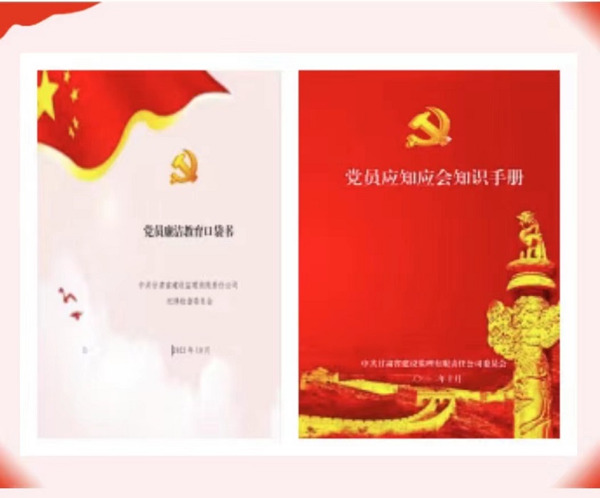 活動(dòng)中,建設(shè)監(jiān)理公司黨委還為黨員精心制作了《黨員廉潔教育口袋書》及《黨員應(yīng)知應(yīng)會(huì)知識(shí)手冊(cè)》,篩選出黨紀(jì)黨規(guī)、黨建常識(shí)、名言警句、家風(fēng)家教、廉潔從業(yè)等各方面的常用知識(shí),方便黨員學(xué)習(xí)使用。此次系列黨建活動(dòng)不但拓展了黨員干部職工的學(xué)習(xí)途徑,豐富了黨建宣傳形式,更有助于進(jìn)一步提升黨員的政治素質(zhì)和對(duì)黨建工作的認(rèn)知,凝聚廉政廉潔、風(fēng)清氣正的思想共識(shí)。