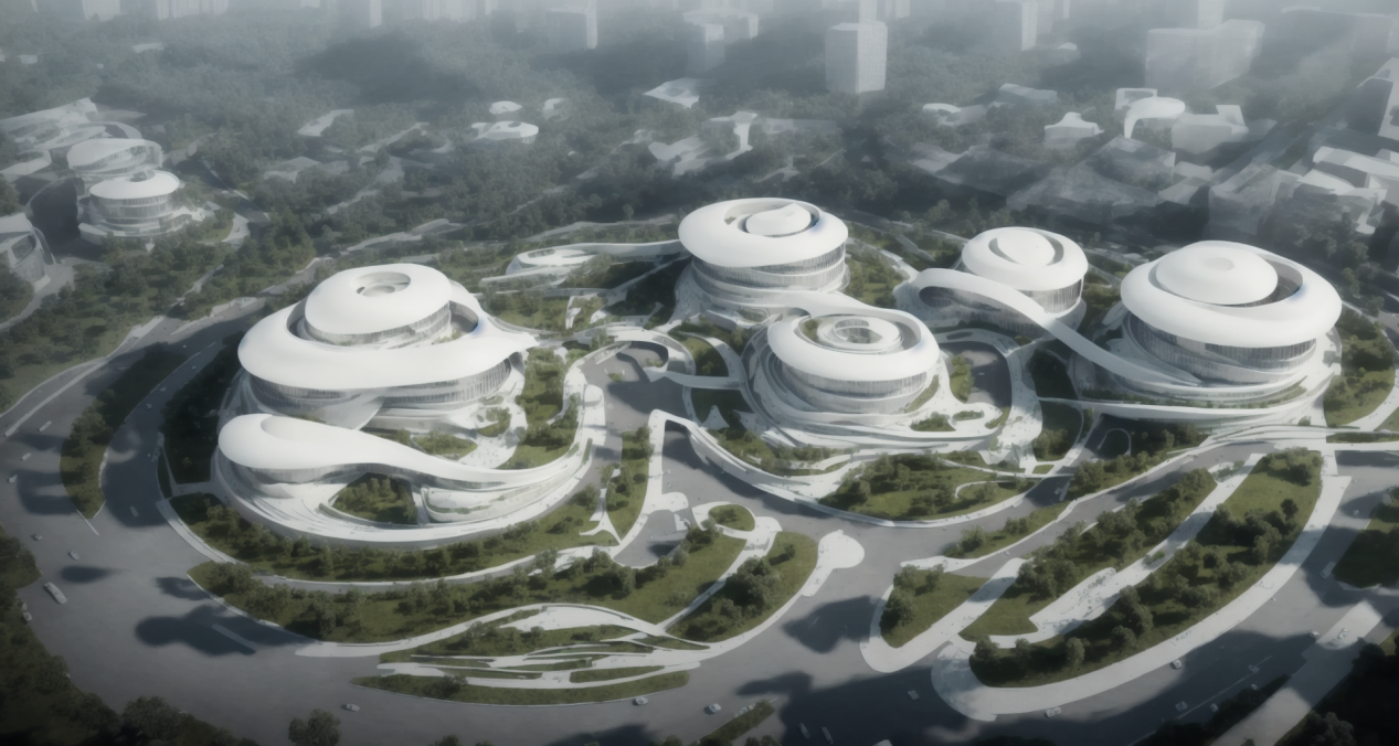 自AI繪畫逐漸走入大眾視野,人工智能作為一種可以模擬人類智能的技術,被廣泛應用于建筑領域,成為建筑設計師的重要輔助工具。省建筑設計院設計創(chuàng)作團隊積極響應數(shù)字化建設,在多個項目上進行人工智能技術、參數(shù)化技術的創(chuàng)作實踐,完成了建筑方案設計創(chuàng)新。該設計創(chuàng)作團隊把AI建筑方案設計全過程植入“臨夏市西部文化組團局部地塊方案設計項目——博物館建筑設計”,從理念和形體出發(fā),對原設計進行深化,完善方案初期設計構(gòu)思。在空間方面,建筑形體通過中間體塊的串聯(lián),將五個圍合性的內(nèi)向空間結(jié)合景觀依次展開,并將中間主館部分抬高處理,強化了主館在整個博物館群中體量上、視覺上的分量。在景觀方面,建筑與環(huán)境融合更加渾然一體,達到和諧共生。此外,研究團隊還對景泰縣游客集散中心、景泰中心、臨夏市花兒博物館等項目進行了AI設計比對探索,使AI在設計初期的優(yōu)勢進一步顯現(xiàn)。