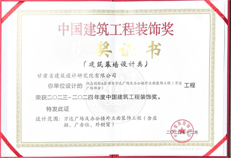 近日,中國建筑裝飾協(xié)會公布了2023-2024年度“中國建筑工程裝飾獎”獲獎名單,省建筑設(shè)計(jì)院承擔(dān)設(shè)計(jì)的“潤嘉國際A區(qū)項(xiàng)目萬達(dá)廣場及辦公樓外立面裝飾工程(萬達(dá)廣場部分)”榜上有名。