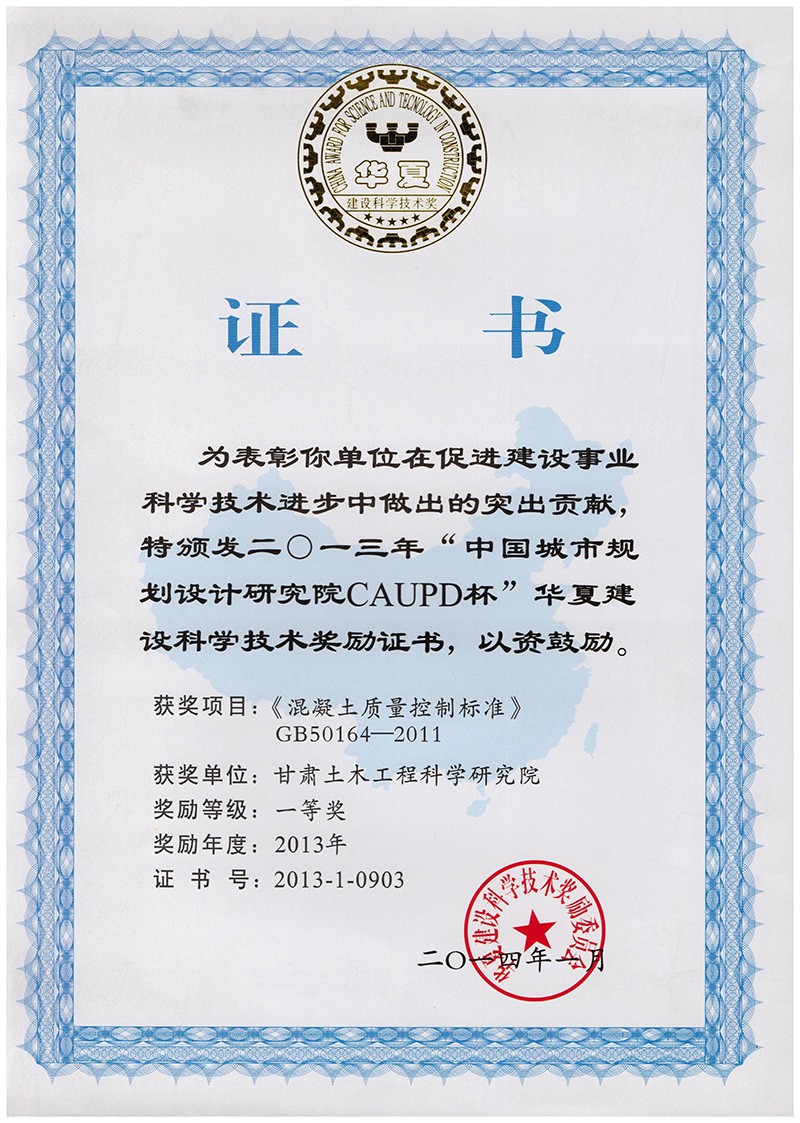 二0一三年“中國城市規(guī)劃設(shè)計研究院CAUPD杯”華夏建設(shè)科學技術(shù)獎
