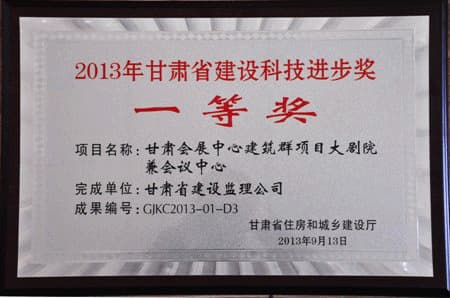 2013年甘肅省建設(shè)科技進步獎一等獎